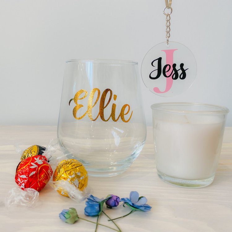 Personalised messages on glasses can be up to 3 lines, in Black, White, Gold, Rainbow or Frosted Etching (1 line max on etching included). If you see a glass design on our website that you like us to use for your glass! Please let us know on checkout!